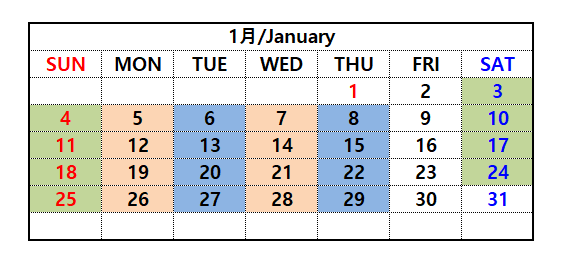 4. 周末班(周六/周日):1月3日 ~ 1月25日