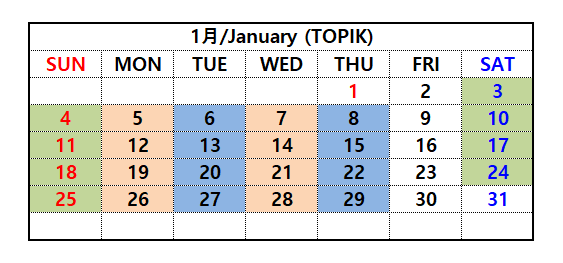 – 周六+周日:常规班/TOPIK2强化班/口语强化班/实时在线课程