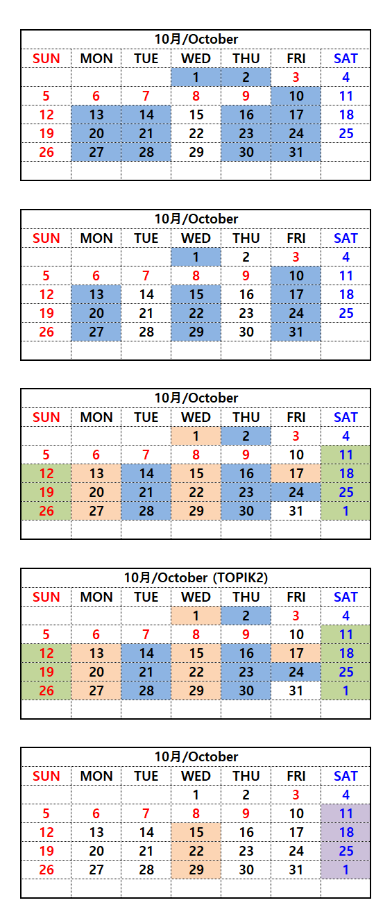5. 토요일 회화 정규반 / 토요일 TOPIK반 (TOPIK1, TOPIK2) / 토요일 말하기 집중반